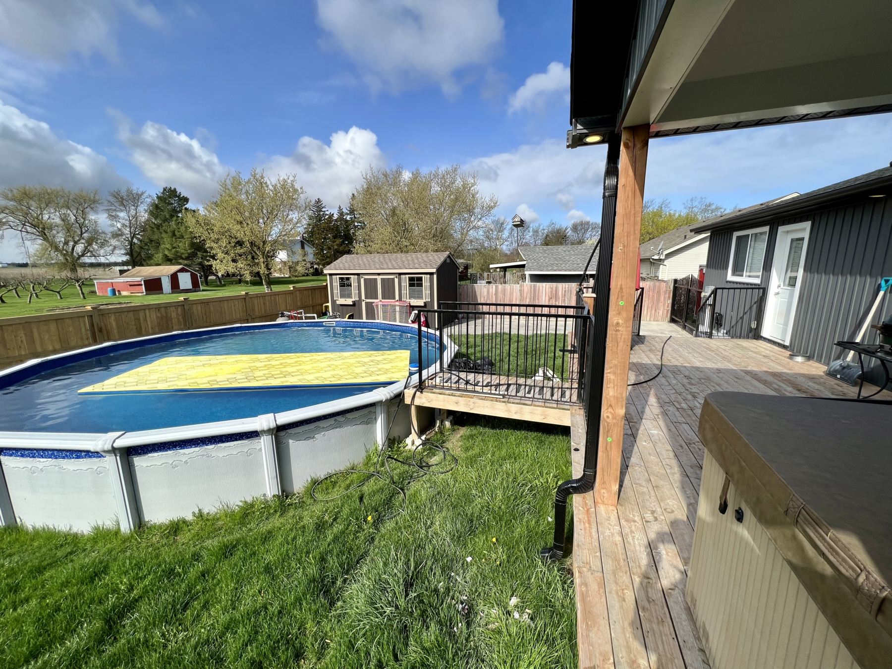 Excellent updated family home on quiet street in the village of Thedford, located just a 10 minute drive to Lake Huron beaches and less than thirty five minutes to London , Strathroy or Sarnia. Thedford offers a variety of shops, restaurants, winery, Community Centre with arena and library and golf courses nearby. Home features a covered front entry deck, (9' 6" x 9' 3") two plus two bedrooms, 2 full baths, open concept living room with newer laminate flooring and floor to ceiling stone fire place with cozy gas insert new in 2020. Kitchen was updated in 2020 with built-in dishwasher & microwave, Corian counter, tile backsplash, laminate flooring and lots of cabinets, separate dining room with newer laminate flooring. Energy-efficient furnace and central air new in 2021, gas hot water heater new 2019, 100 amp hydro service with breakers (2018)and wiring was upgraded 2021, alarm system, roof shingles new 2020. Covered 12 x 10 foot hot tub deck plus a 21 x 12 foot open deck (2019) in rear overlooking fully privacy fenced (2023) yard and above ground heated pool, 16 x 10 foot shed wired and 30 amp panel on concrete pad (2021) and 52' x 13' 6" stamped concrete patio (2020) in yard. Long double concrete drive with lots of parking. Exterior of home and basement spray foamed in 2017, siding replaced 2018. All plumbing lines and fixtures replaced 2020. Front door and windows replaced in 2020. Extra insulation added in attic. You can just move in and enjoy! Call Bill or Yvonne now to view 1-866-700-6106.